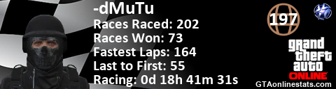 <a href="http://GTAonlinestats.com/showplayer/-dMuTu"><img src="http://GTAonlinestats.com/racesignature/-dMuTu/sig.png" alt="-dMuTu" border="0" /></a>