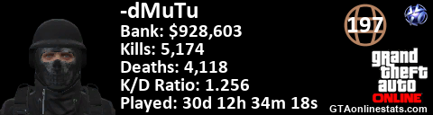 <a href="http://GTAonlinestats.com/showplayer/-dMuTu"><img src="http://GTAonlinestats.com/randomsignature/-dMuTu/sig.png" alt="-dMuTu" border="0" /></a>