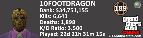<a href="http://GTAonlinestats.com/showplayer/10FOOTDRAGON"><img src="http://GTAonlinestats.com/signature/10FOOTDRAGON/sig.png" alt="10FOOTDRAGON" border="0" /></a>
