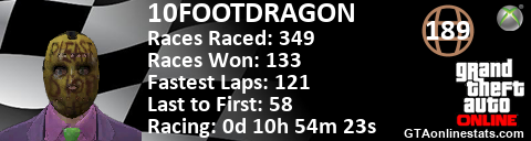 [URL=http://GTAonlinestats.com/showplayer/10FOOTDRAGON][IMG]http://GTAonlinestats.com/racesignature/10FOOTDRAGON/sig.png[/IMG][/URL]