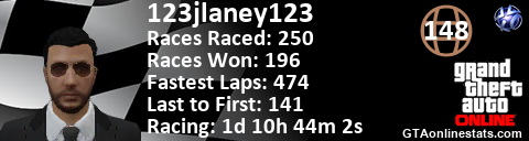 [URL=http://GTAonlinestats.com/showplayer/123jlaney123][IMG]http://GTAonlinestats.com/racesignature/123jlaney123/sig.png[/IMG][/URL]