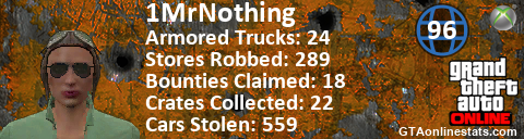 <a href="http://GTAonlinestats.com/showplayer/1MrNothing"><img src="http://GTAonlinestats.com/randomsignature/1MrNothing/sig.png" alt="1MrNothing" border="0" /></a>