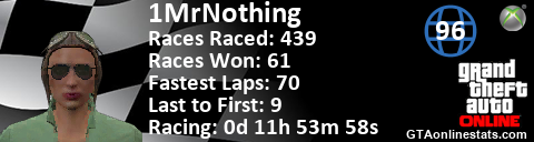 <a href="http://GTAonlinestats.com/showplayer/1MrNothing"><img src="http://GTAonlinestats.com/racesignature/1MrNothing/sig.png" alt="1MrNothing" border="0" /></a>