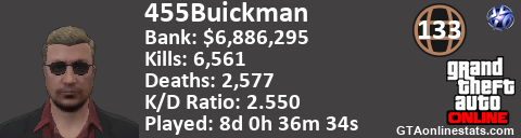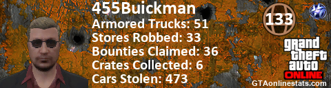 <a href="http://GTAonlinestats.com/showplayer/455Buickman"><img src="http://GTAonlinestats.com/signature/455Buickman/sig.png" alt="455Buickman" border="0" /></a>