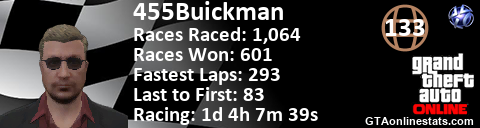 <a href="http://GTAonlinestats.com/showplayer/455Buickman"><img src="http://GTAonlinestats.com/racesignature/455Buickman/sig.png" alt="455Buickman" border="0" /></a>