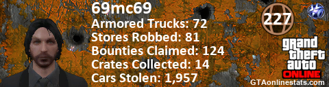 [URL=http://GTAonlinestats.com/showplayer/69mc69][IMG]http://GTAonlinestats.com/crimesignature/69mc69/sig.png[/IMG][/URL]