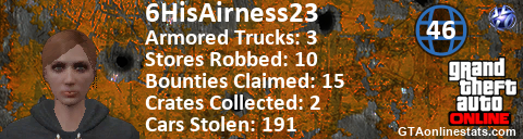 [URL=http://GTAonlinestats.com/showplayer/6HisAirness23][IMG]http://GTAonlinestats.com/randomsignature/6HisAirness23/sig.png[/IMG][/URL]