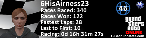 <a href="http://GTAonlinestats.com/showplayer/6HisAirness23"><img src="http://GTAonlinestats.com/racesignature/6HisAirness23/sig.png" alt="6HisAirness23" border="0" /></a>