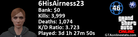<a href="http://GTAonlinestats.com/showplayer/6HisAirness23"><img src="http://GTAonlinestats.com/signature/6HisAirness23/sig.png" alt="6HisAirness23" border="0" /></a>