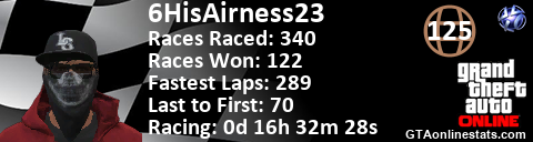 <a href="http://GTAonlinestats.com/showplayer/6HisAirness23/2"><img src="http://GTAonlinestats.com/racesignature/6HisAirness23/2/sig.png" alt="6HisAirness23" border="0" /></a>
