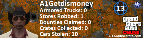 [URL=http://GTAonlinestats.com/showplayer/A1Getdismoney][IMG]http://GTAonlinestats.com/crimesignature/A1Getdismoney/sig.png[/IMG][/URL]