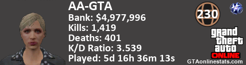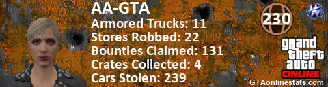 [URL=http://GTAonlinestats.com/showplayer/AA-GTA][IMG]http://GTAonlinestats.com/randomsignature/AA-GTA/sig.png[/IMG][/URL]