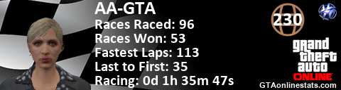 <a href="http://GTAonlinestats.com/showplayer/AA-GTA"><img src="http://GTAonlinestats.com/racesignature/AA-GTA/sig.png" alt="AA-GTA" border="0" /></a>