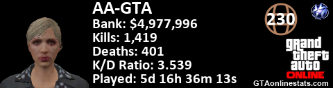 <a href="http://GTAonlinestats.com/showplayer/AA-GTA"><img src="http://GTAonlinestats.com/dmsignature/AA-GTA/sig.png" alt="AA-GTA" border="0" /></a>