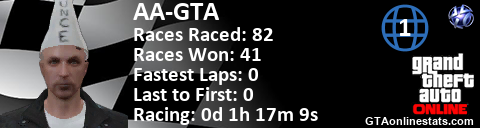 [URL=http://GTAonlinestats.com/showplayer/AA-GTA/2][IMG]http://GTAonlinestats.com/racesignature/AA-GTA/2/sig.png[/IMG][/URL]