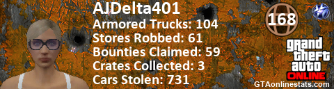 [URL=http://GTAonlinestats.com/showplayer/AJDelta401/2][IMG]http://GTAonlinestats.com/crimesignature/AJDelta401/2/sig.png[/IMG][/URL]