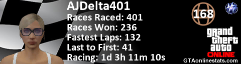 [URL=http://GTAonlinestats.com/showplayer/AJDelta401/2][IMG]http://GTAonlinestats.com/racesignature/AJDelta401/2/sig.png[/IMG][/URL]