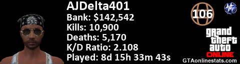 <a href="http://GTAonlinestats.com/showplayer/AJDelta401/3"><img src="http://GTAonlinestats.com/dmsignature/AJDelta401/3/sig.png" alt="AJDelta401" border="0" /></a>