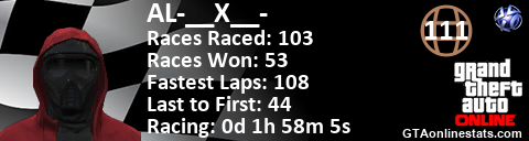 [URL=http://GTAonlinestats.com/showplayer/AL-__X__-][IMG]http://GTAonlinestats.com/racesignature/AL-__X__-/sig.png[/IMG][/URL]
