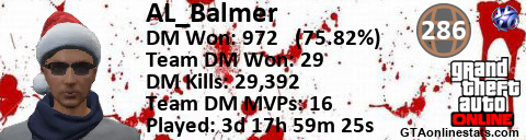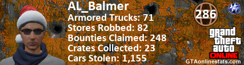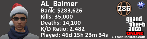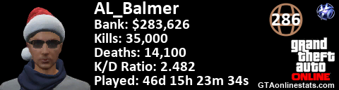 [URL=http://GTAonlinestats.com/showplayer/AL_Balmer][IMG]http://GTAonlinestats.com/randomsignature/AL_Balmer/sig.png[/IMG][/URL]
