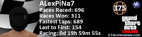 [URL=http://GTAonlinestats.com/showplayer/ALexPiNa7][IMG]http://GTAonlinestats.com/racesignature/ALexPiNa7/sig.png[/IMG][/URL]