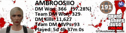 [URL=http://GTAonlinestats.com/showplayer/AMBROOSIIO][IMG]http://GTAonlinestats.com/dmsignature/AMBROOSIIO/sig.png[/IMG][/URL]