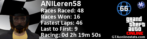 [URL=http://GTAonlinestats.com/showplayer/ANILeren58][IMG]http://GTAonlinestats.com/racesignature/ANILeren58/sig.png[/IMG][/URL]