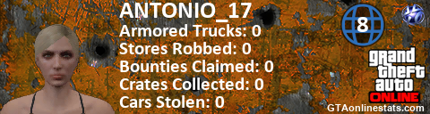 [URL=http://GTAonlinestats.com/showplayer/ANTONIO_17/2][IMG]http://GTAonlinestats.com/crimesignature/ANTONIO_17/2/sig.png[/IMG][/URL]