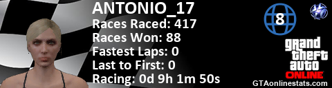 [URL=http://GTAonlinestats.com/showplayer/ANTONIO_17/2][IMG]http://GTAonlinestats.com/racesignature/ANTONIO_17/2/sig.png[/IMG][/URL]