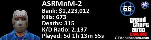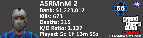 <a href="http://GTAonlinestats.com/showplayer/ASRMnM-2"><img src="http://GTAonlinestats.com/dmsignature/ASRMnM-2/sig.png" alt="ASRMnM-2" border="0" /></a>