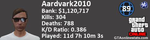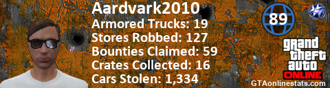 [URL=http://GTAonlinestats.com/showplayer/Aardvark2010][IMG]http://GTAonlinestats.com/signature/Aardvark2010/sig.png[/IMG][/URL]