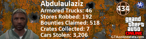 <a href="http://GTAonlinestats.com/showplayer/Abdulaulaziz"><img src="http://GTAonlinestats.com/randomsignature/Abdulaulaziz/sig.png" alt="Abdulaulaziz" border="0" /></a>