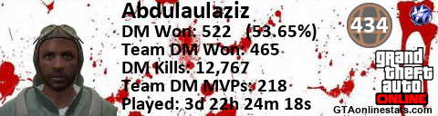 [URL=http://GTAonlinestats.com/showplayer/Abdulaulaziz][IMG]http://GTAonlinestats.com/dmsignature/Abdulaulaziz/sig.png[/IMG][/URL]