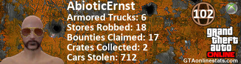 [URL=http://GTAonlinestats.com/showplayer/AbioticErnst][IMG]http://GTAonlinestats.com/randomsignature/AbioticErnst/sig.png[/IMG][/URL]