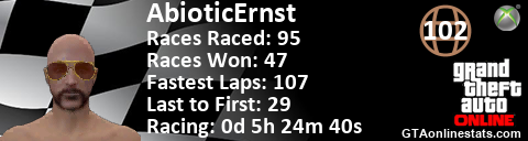 <a href="http://GTAonlinestats.com/showplayer/AbioticErnst"><img src="http://GTAonlinestats.com/racesignature/AbioticErnst/sig.png" alt="AbioticErnst" border="0" /></a>