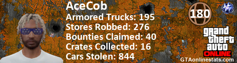 [URL=http://GTAonlinestats.com/showplayer/AceCob][IMG]http://GTAonlinestats.com/signature/AceCob/sig.png[/IMG][/URL]