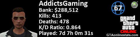 <a href="http://GTAonlinestats.com/showplayer/AddictsGaming"><img src="http://GTAonlinestats.com/signature/AddictsGaming/sig.png" alt="AddictsGaming" border="0" /></a>