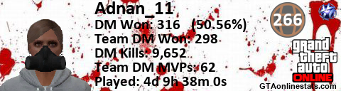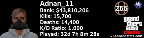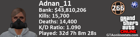 [URL=http://GTAonlinestats.com/showplayer/Adnan_11][IMG]http://GTAonlinestats.com/signature/Adnan_11/sig.png[/IMG][/URL]