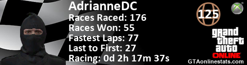 [URL=http://GTAonlinestats.com/showplayer/AdrianneDC][IMG]http://GTAonlinestats.com/racesignature/AdrianneDC/sig.png[/IMG][/URL]