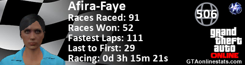 [URL=http://GTAonlinestats.com/showplayer/Afira-Faye][IMG]http://GTAonlinestats.com/racesignature/Afira-Faye/sig.png[/IMG][/URL]