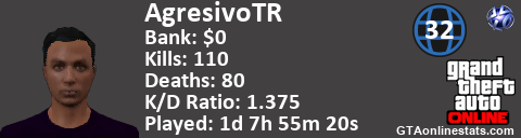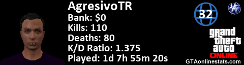 <a href="http://GTAonlinestats.com/showplayer/AgresivoTR"><img src="http://GTAonlinestats.com/signature/AgresivoTR/sig.png" alt="AgresivoTR" border="0" /></a>