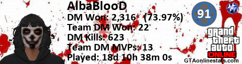 [URL=http://GTAonlinestats.com/showplayer/AlbaBlooD/2][IMG]http://GTAonlinestats.com/dmsignature/AlbaBlooD/2/sig.png[/IMG][/URL]