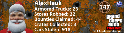[URL=http://GTAonlinestats.com/showplayer/AlexHauk][IMG]http://GTAonlinestats.com/randomsignature/AlexHauk/sig.png[/IMG][/URL]