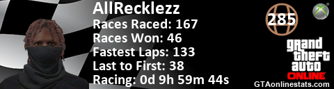 [URL=http://GTAonlinestats.com/showplayer/AllRecklezz][IMG]http://GTAonlinestats.com/racesignature/AllRecklezz/sig.png[/IMG][/URL]