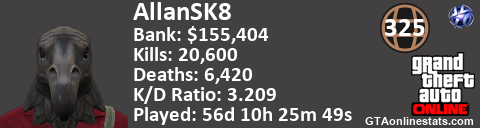 [URL=http://GTAonlinestats.com/showplayer/AllanSK8][IMG]http://GTAonlinestats.com/dmsignature/AllanSK8/sig.png[/IMG][/URL]