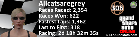 [URL=http://GTAonlinestats.com/showplayer/Allcatsaregrey][IMG]http://GTAonlinestats.com/racesignature/Allcatsaregrey/sig.png[/IMG][/URL]