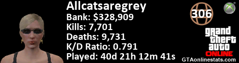 [URL=http://GTAonlinestats.com/showplayer/Allcatsaregrey][IMG]http://GTAonlinestats.com/dmsignature/Allcatsaregrey/sig.png[/IMG][/URL]