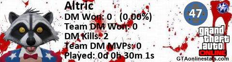 [URL=http://GTAonlinestats.com/showplayer/Altric/2][IMG]http://GTAonlinestats.com/dmsignature/Altric/2/sig.png[/IMG][/URL]