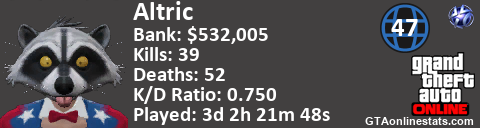<a href="http://GTAonlinestats.com/showplayer/Altric/2"><img src="http://GTAonlinestats.com/signature/Altric/2/sig.png" alt="Altric" border="0" /></a>