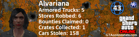 [URL=http://GTAonlinestats.com/showplayer/Alvariana][IMG]http://GTAonlinestats.com/crimesignature/Alvariana/sig.png[/IMG][/URL]